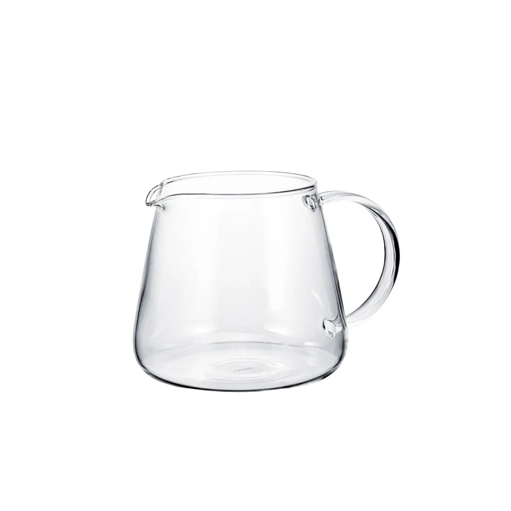 A cool new server by Hario. A modern, round and sleek shape featuring Hario’s signature “Heatproof Glass”. This borosilicate glass is tempered so it's great for brewing hot or over ice.
