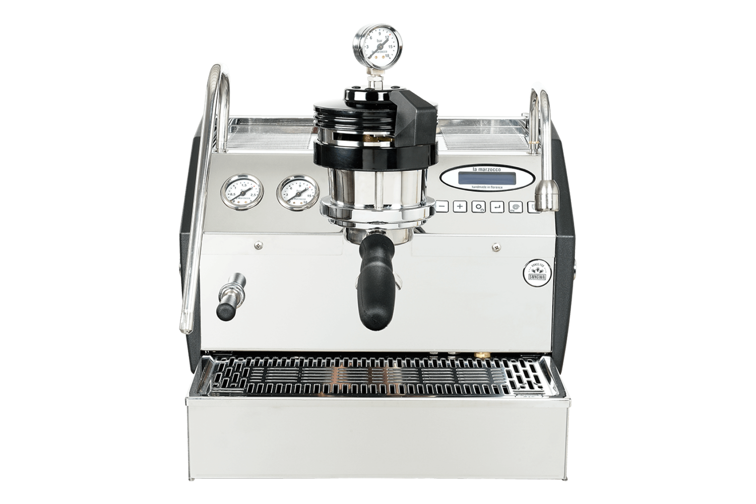 The GS3 AV (Automatic) brings La Marzocco's most advanced commercial technology to the home. Dual boiler system with dual PID controllers, saturated groups for thermal stability, and electronic dose programming for repeatable results. Features a digital display with temperature monitoring and shot timers, internal rotary pump, insulated boilers, ruby flow restrictors, and a 3.5L reservoir eliminating plumbing requirements.