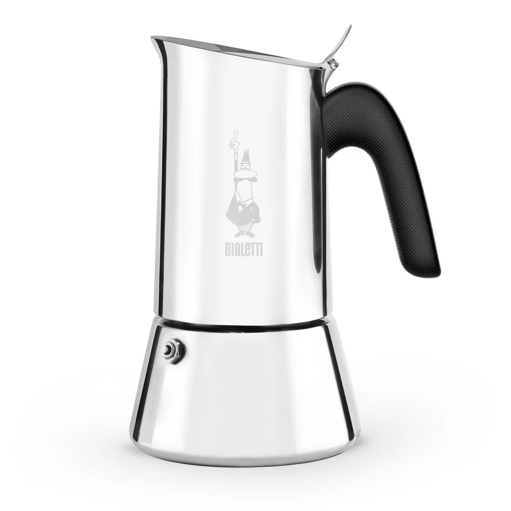 This stovetop espresso pot is made from 18/10 stainless steel and is compatible with all cooktops including induction* (Venus 2 cup size is not suitable for induction cooktops).